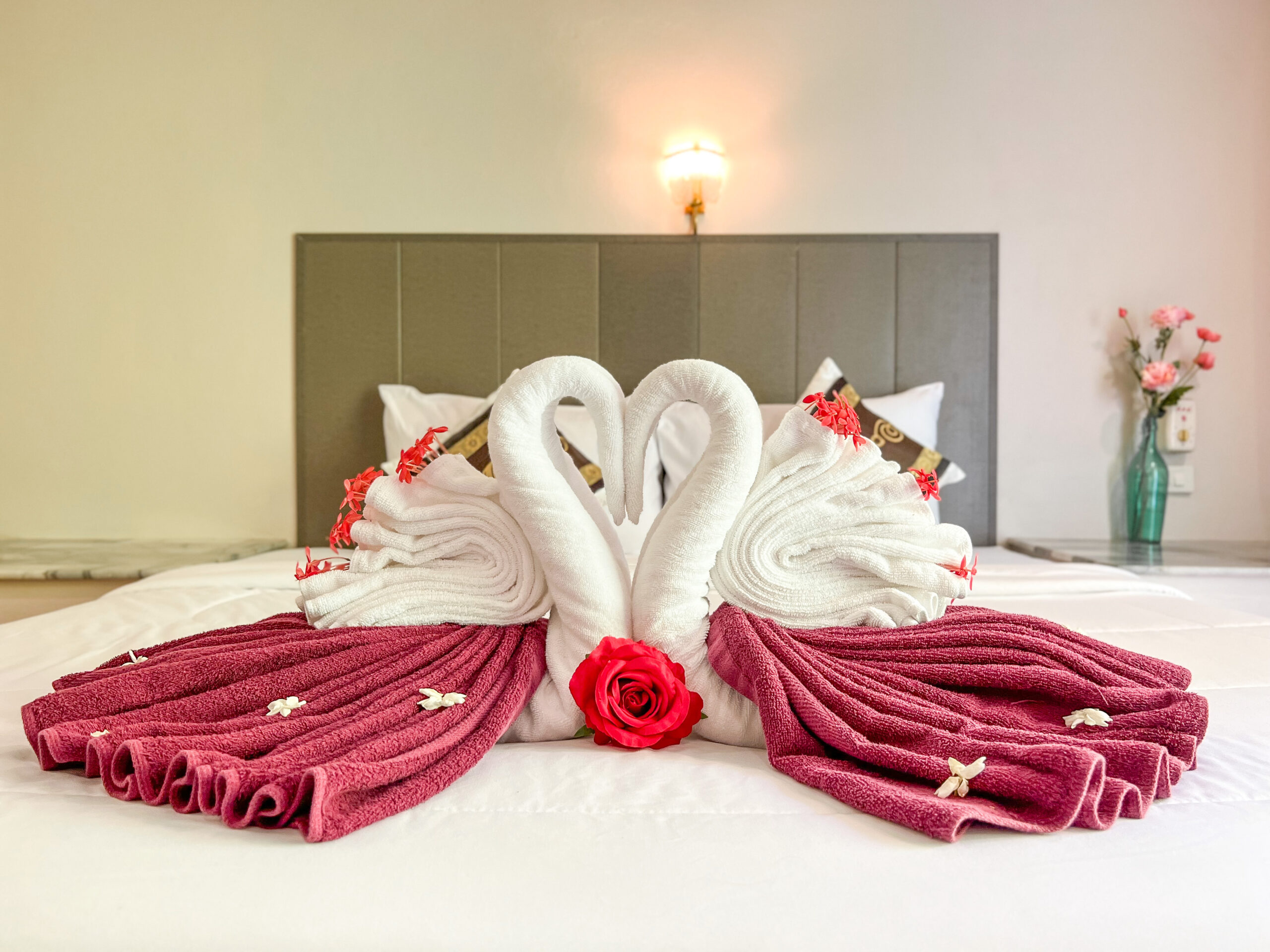 This deluxe pool view features a fireplace. The studio features air conditioning, a seating area, a terrace with pool views as well as a private bathroom boasting a shower. The unit has 3 beds.